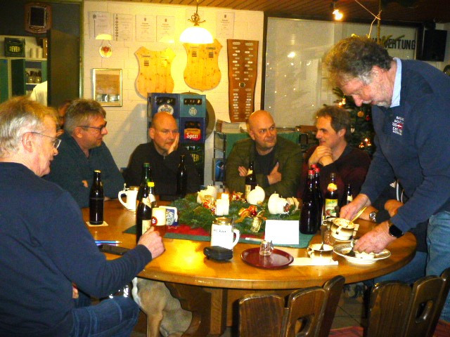 Vor dem Weihnachtsbaum und dem toll geschmückten Adventskranz – danke an Monika und Roland Zeitler – stärkten sich die diesjährigen Teilnehmer vor dem Schießen mit dem Luftgewehr auf den Holzvogel, erneut von Ludwig Ermer robust gefertigt, mit scharfer „Chili con carne“. So wie Mark Altena zuvor, wird auch der neue König im nächsten Jahr für Speiß und Trank sorgen müssen.