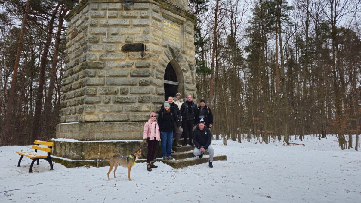 Dieses Jahr traf sich eine kleine, aber motivierte Gruppe (mit Hund) bei kaltem Wetter zum Siegesturm, unserer alljährlichen Königswanderung.